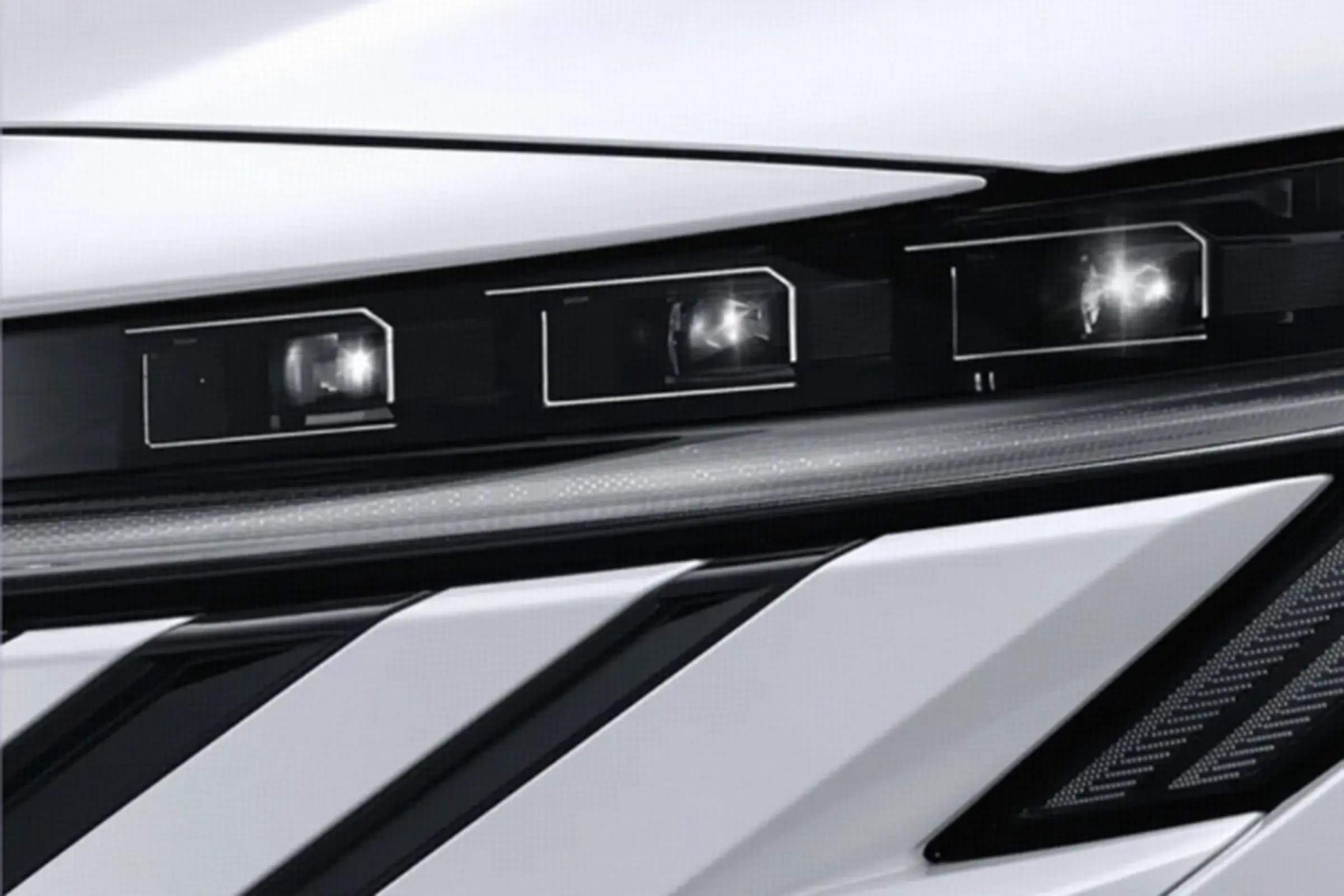 立体悬浮式车标两侧应用了饰板和镀铬饰条,并与左右熏黑大灯相连,使车头更显宽大,灯腔内部是矩阵式LED光源,眼神中流露出几分犀利,而且灯组两侧留有獠牙般光带。
