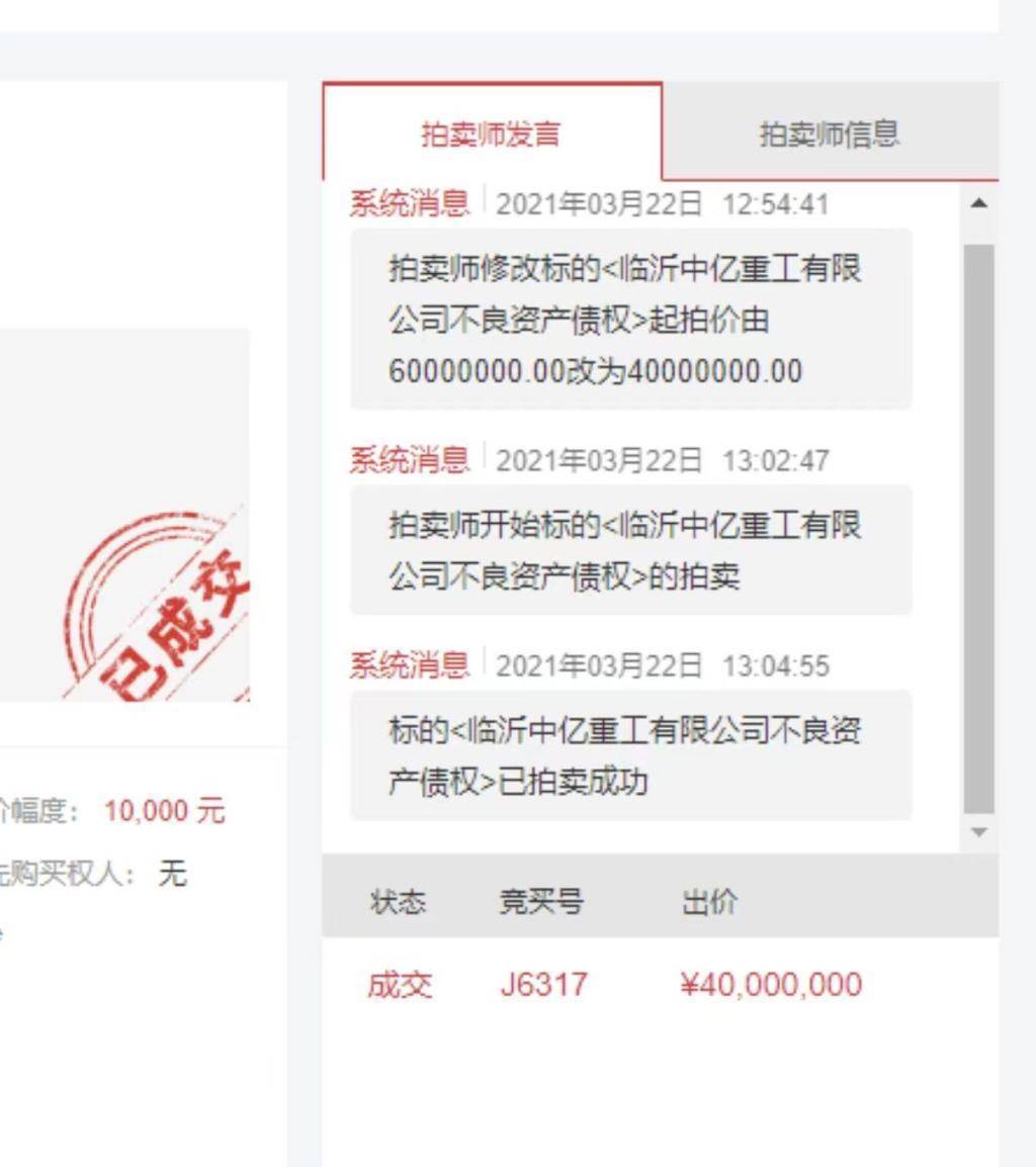 开拍前8分钟,起拍价6000万元的不良资产债权被降至4000万元开拍,不到三分钟交易完成,而拍得债权的公司刚刚成立两个多月。4月12日,上述债权担保人郝艳平告诉澎湃新闻,这是发生于2021年3月22日,中拍平台一场不良资产债权拍卖现场的一幕,平台在没有事先公告的情况下,将原定上午10时的拍卖实际上延迟了两个多小时,到13时许才开拍,且起拍价被临时下调了2000万元。