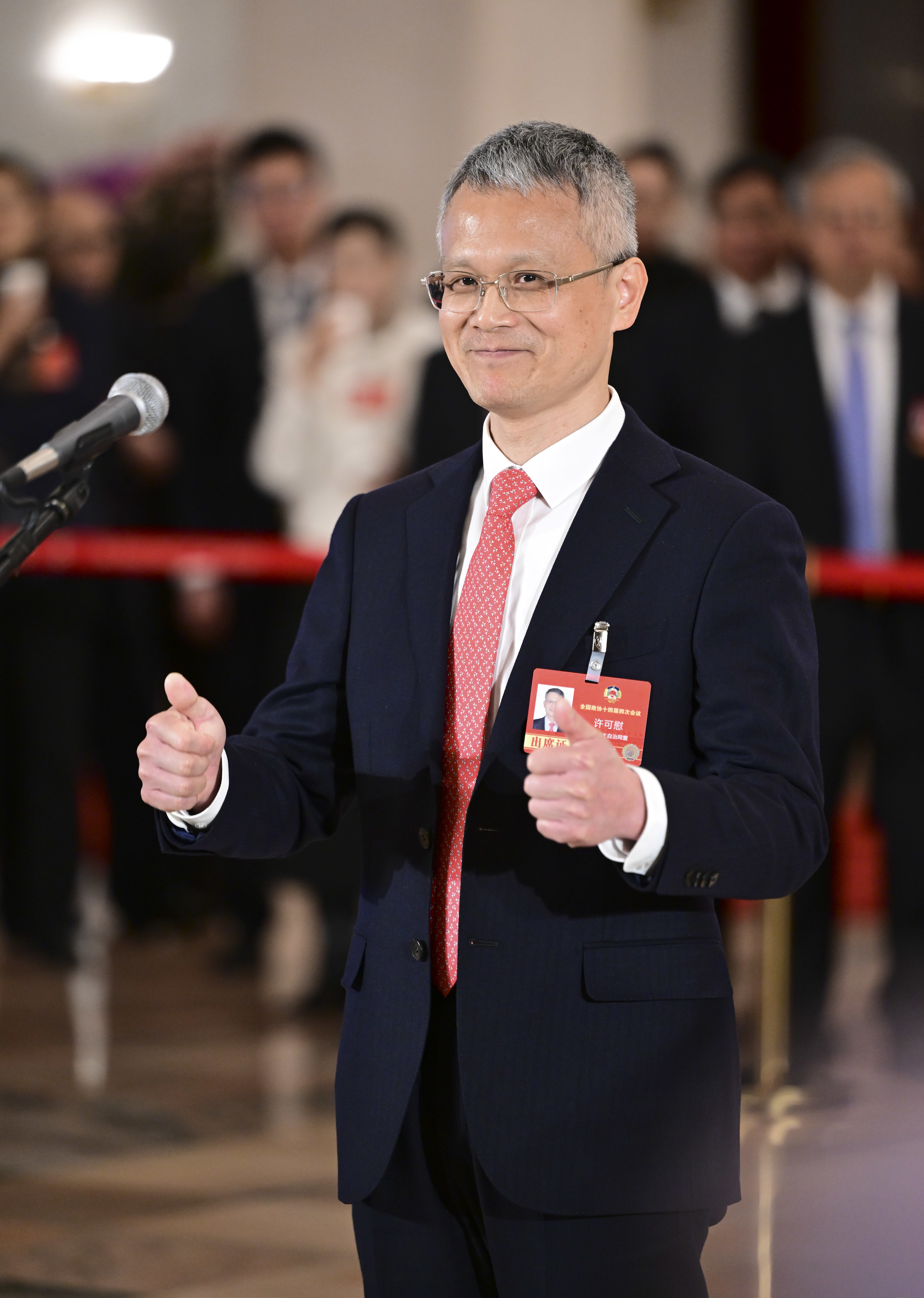 3月11日,全国政协十四届四次会议第三场“委员通道”集体采访活动在北京人民大会堂举行。这是全国政协委员许可慰接受媒体采访。